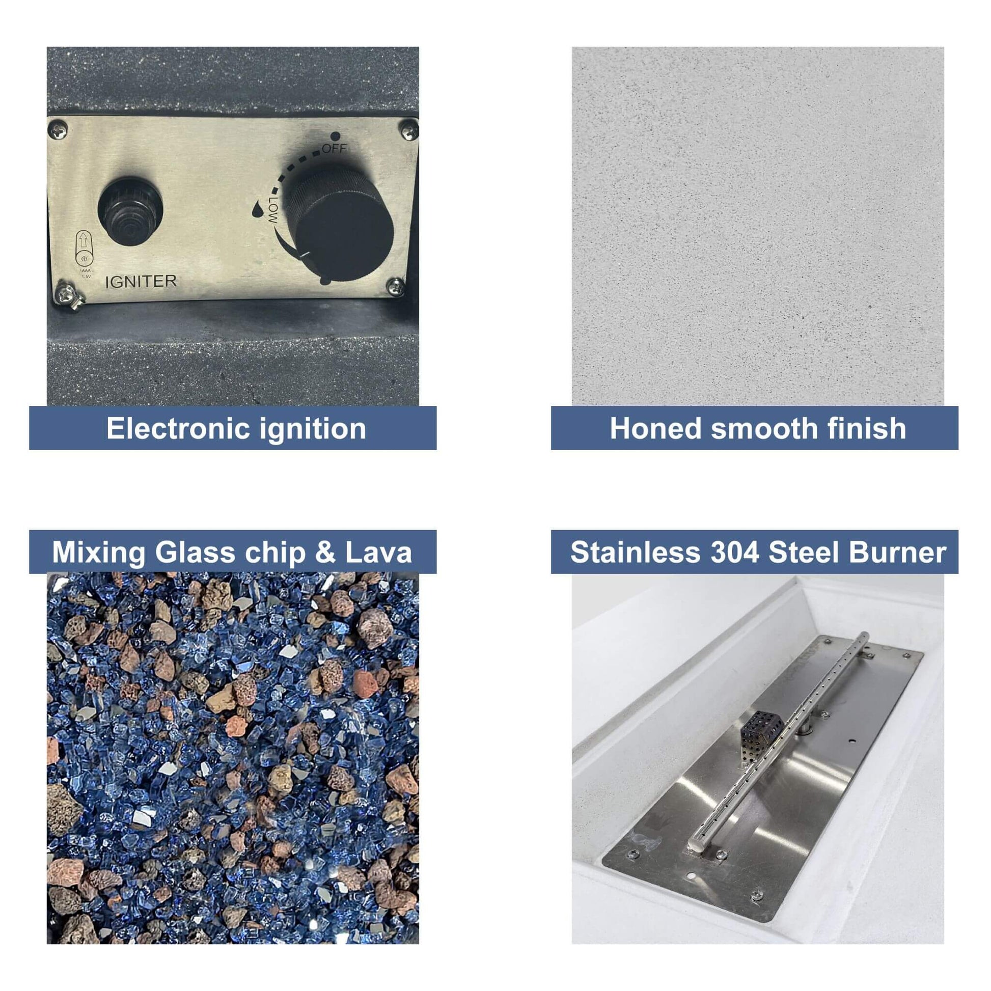 - Built with glass-fiber reinforced concrete, this fire pit combines strength and longevity with a chic, honed finish that resists wear and tear.