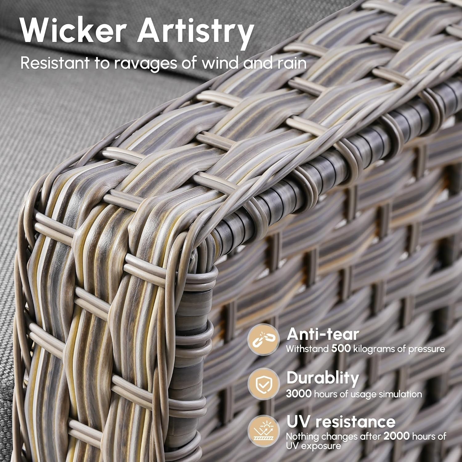 - Resin Wicker Integrity: Crafted with high-quality, weather-resistant polymer resin wicker over a robust frame. This material is selected for its superior resilience and ability to maintain a pristine, stylish appearance against all elements.